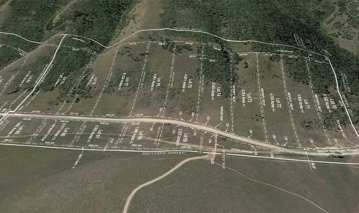 Lot 75 is a beautiful mountain estate with aspen trees and an excellent view. Less than 2 miles from Scofield Reservoir. Click here to view lot corners on Google Maps.